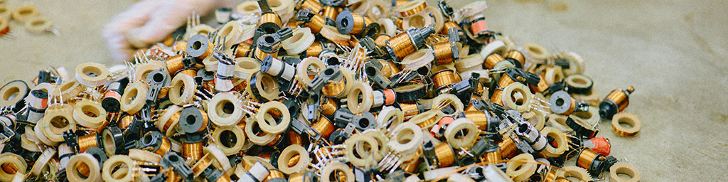 地域のリサイクル会社から作業提供いただいた銅線コイルの解体と分別